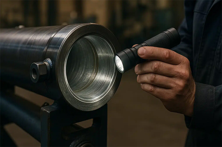 Ang mga propesyonal na tauhan ng pagpapanatili ay gagamit ng isang panloob na sukat ng diameter upang masukat ang eksaktong sukat. Kung ang pagsusuot ng silindro ay lumampas sa 0.127mm, karaniwang kailangang mapalitan o manggas, sa halip na umasa lamang sa hydraulic seal na pag -aayos ng selyo.